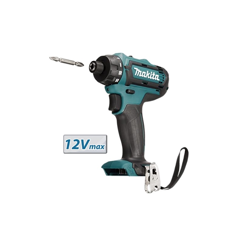 Model DF031D is one of the first new 10.8V platform models. Succeeding the DF030D but now with slide on Compact eXtreme Technology Batteries (depending which variation chosen). This Makita Screwdriver gives a high operation efficiency delivered from high rotational speed and improved screw strip management. The fantastic wee drill-driver is small enough yet powerful enough for most tasks not requiring a hammer drill. With great torque and a sensitive trigger allowing for very gradual screwing, essential when trying screw into wood without pilot holes. The rubberised handle has been designed for best grip and maximum thrust to the bit. A single LED joblight has pre-glow and after-glow functions handy for working in dark conditions.