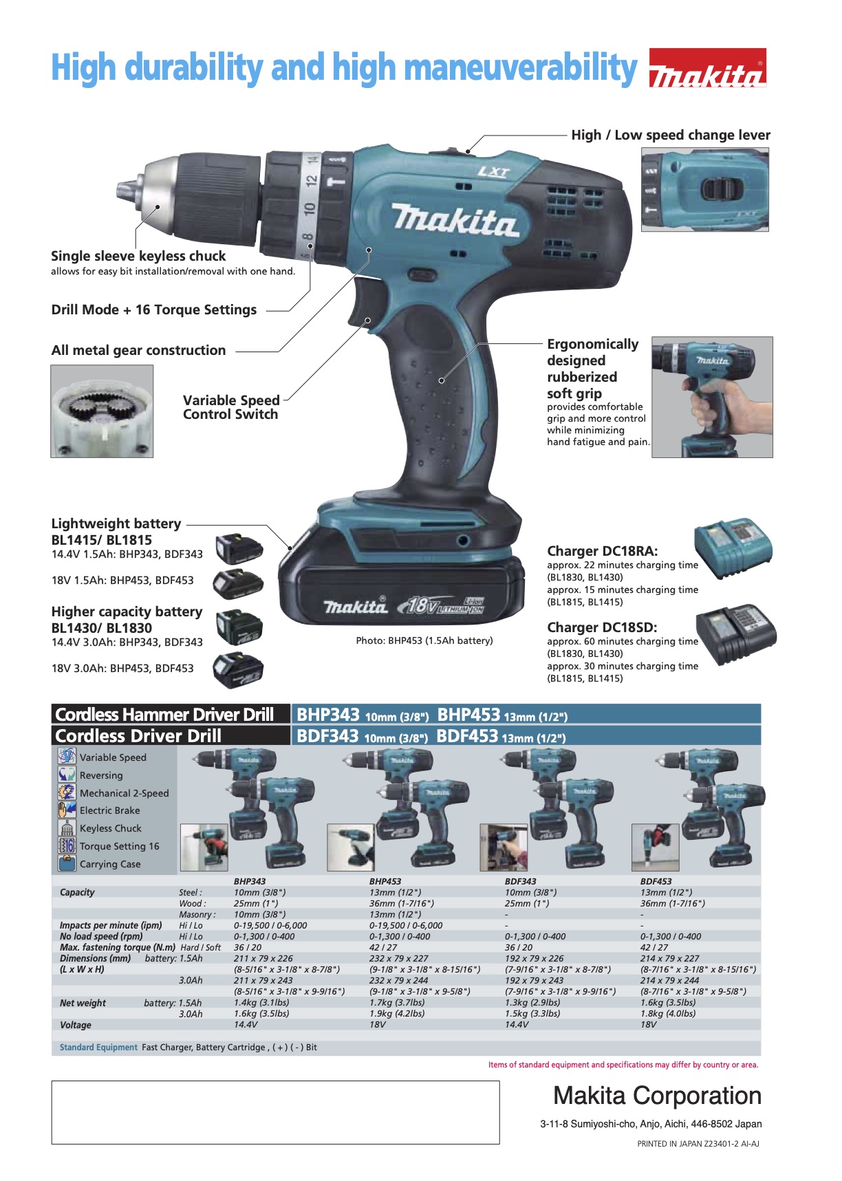 MAKITA DHP453RME 13mm (1/2″) 18V Cordless Hammer Driver Drill