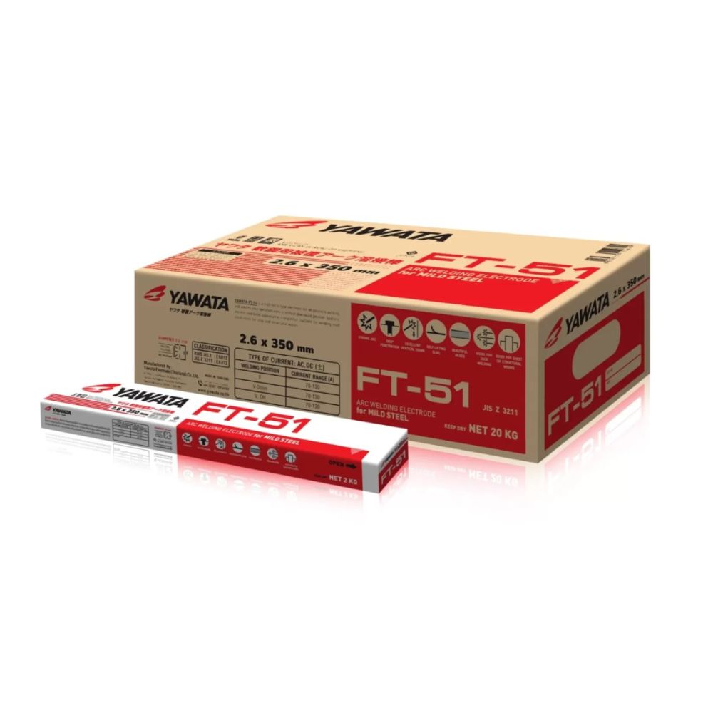 YAWATA FT-51 is a high-rutile type electrode for all positions of welding. It assures easy operation even in a vertical downward position. Spatters are less, and the bead appearance is beautiful.